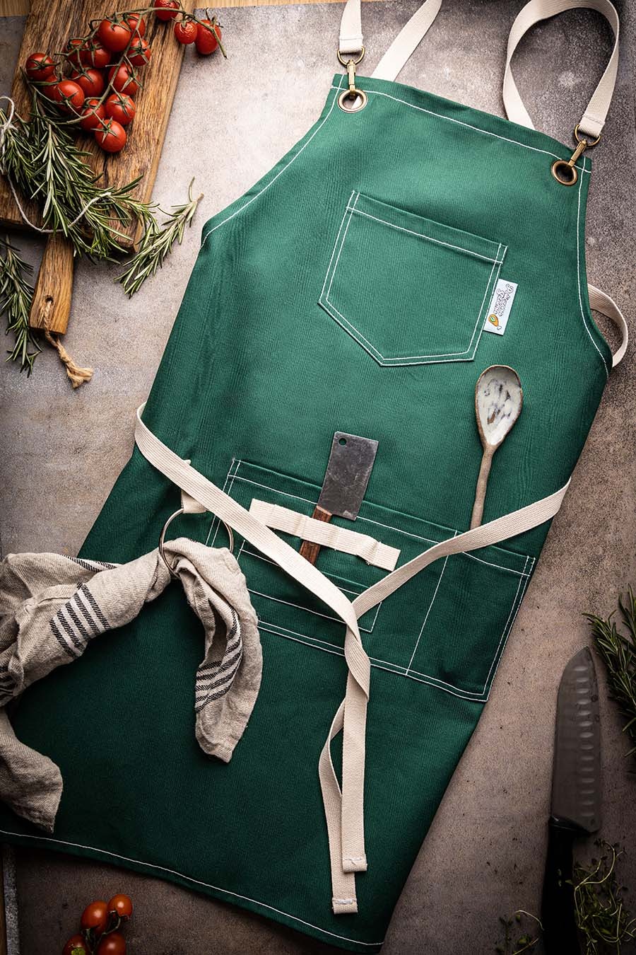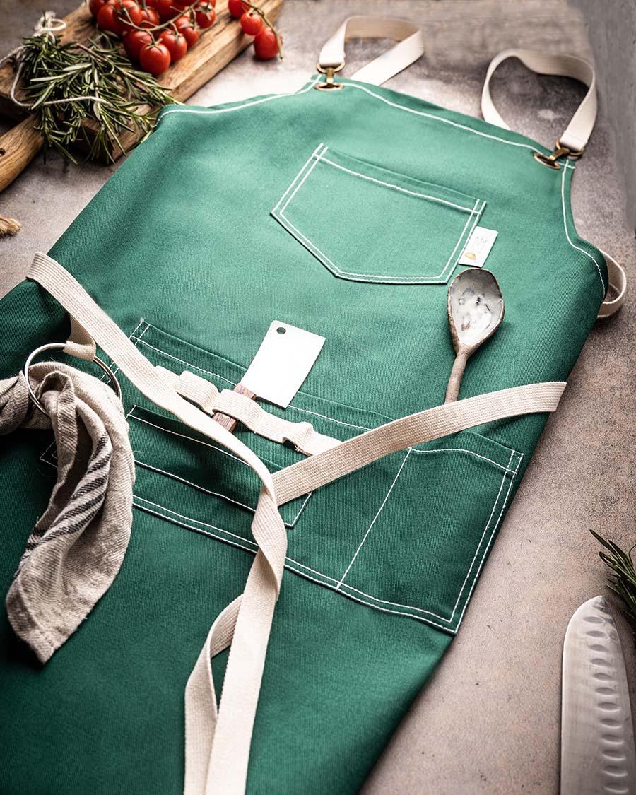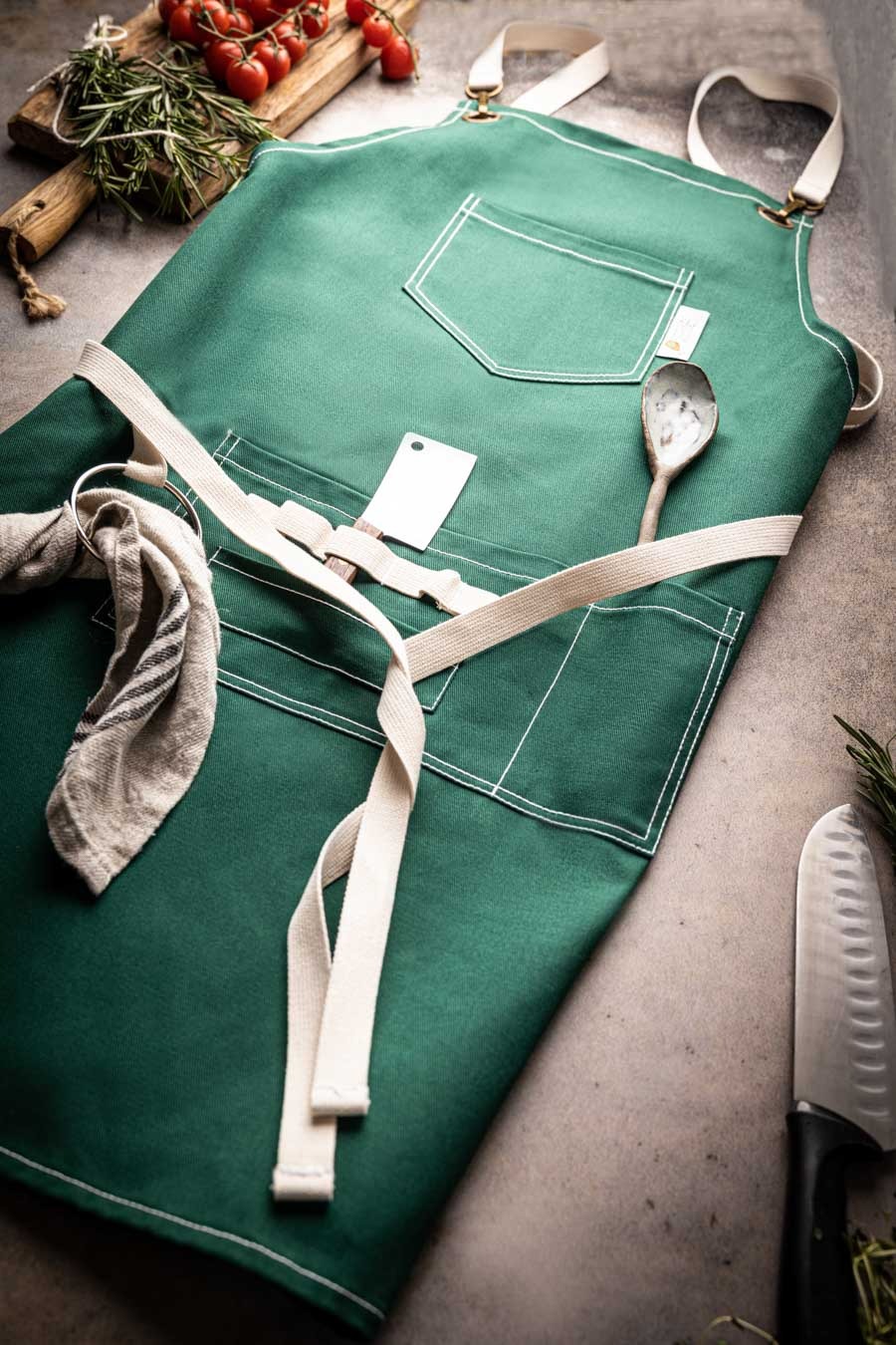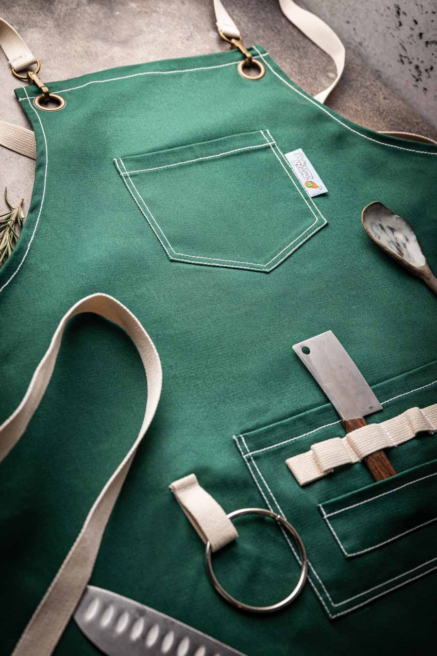 Fartuch w kolorze butelkowej zieleni – elegancja i funkcjonalność w kuchni KGW