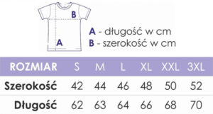 Zmierz szerokość od pachy do pachy (ok. 2 cm pod rękawami) oraz długość od najwyższego punktu do dołu.