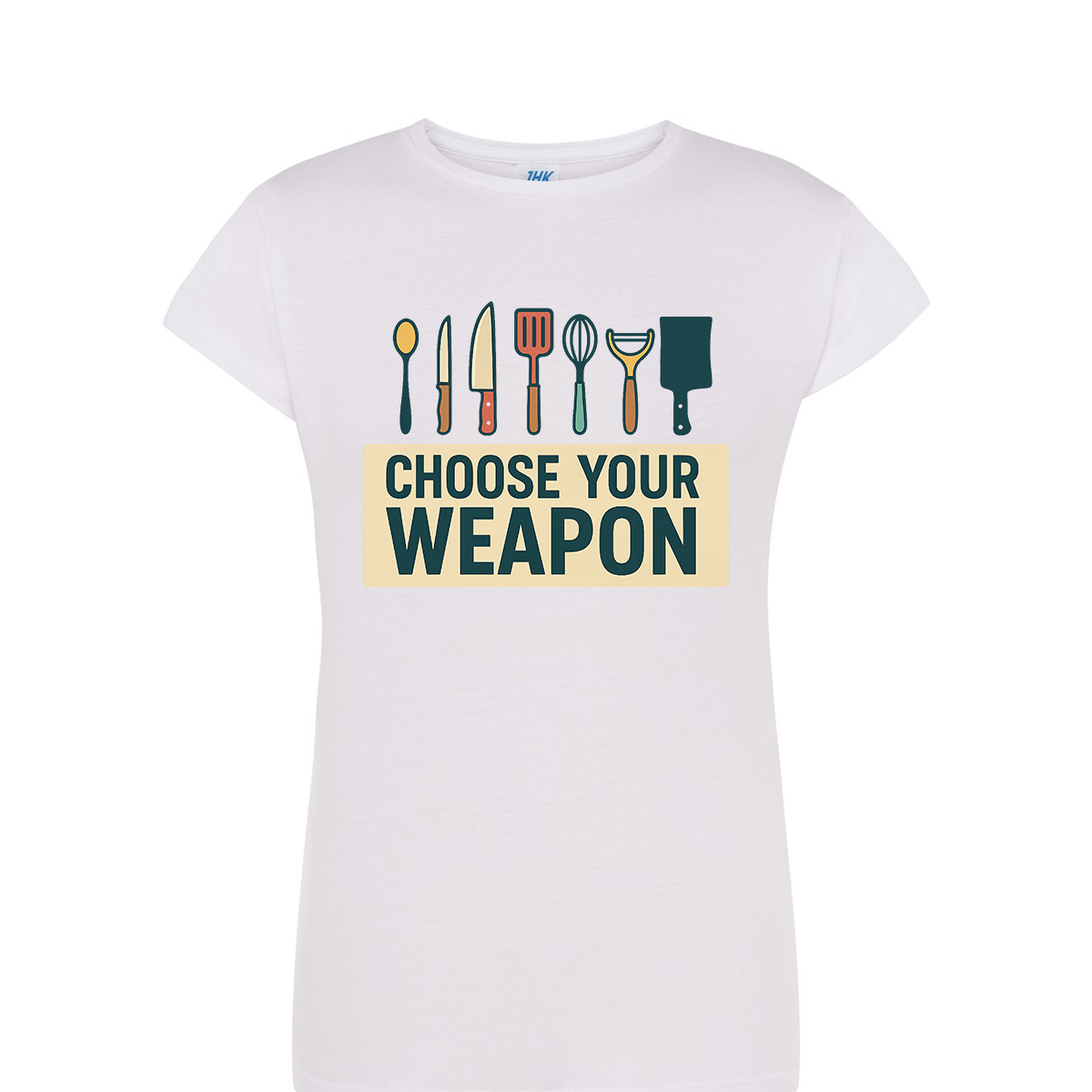 Na przodzie koszulki znajduje się wyjątkowy napis „Choose your weapon”, który dodaje całości charakteru i nuty humoru. To świetna propozycja dla pań, które chcą wyróżnić się w tłumie i podkreślić swoją energię oraz pasję.