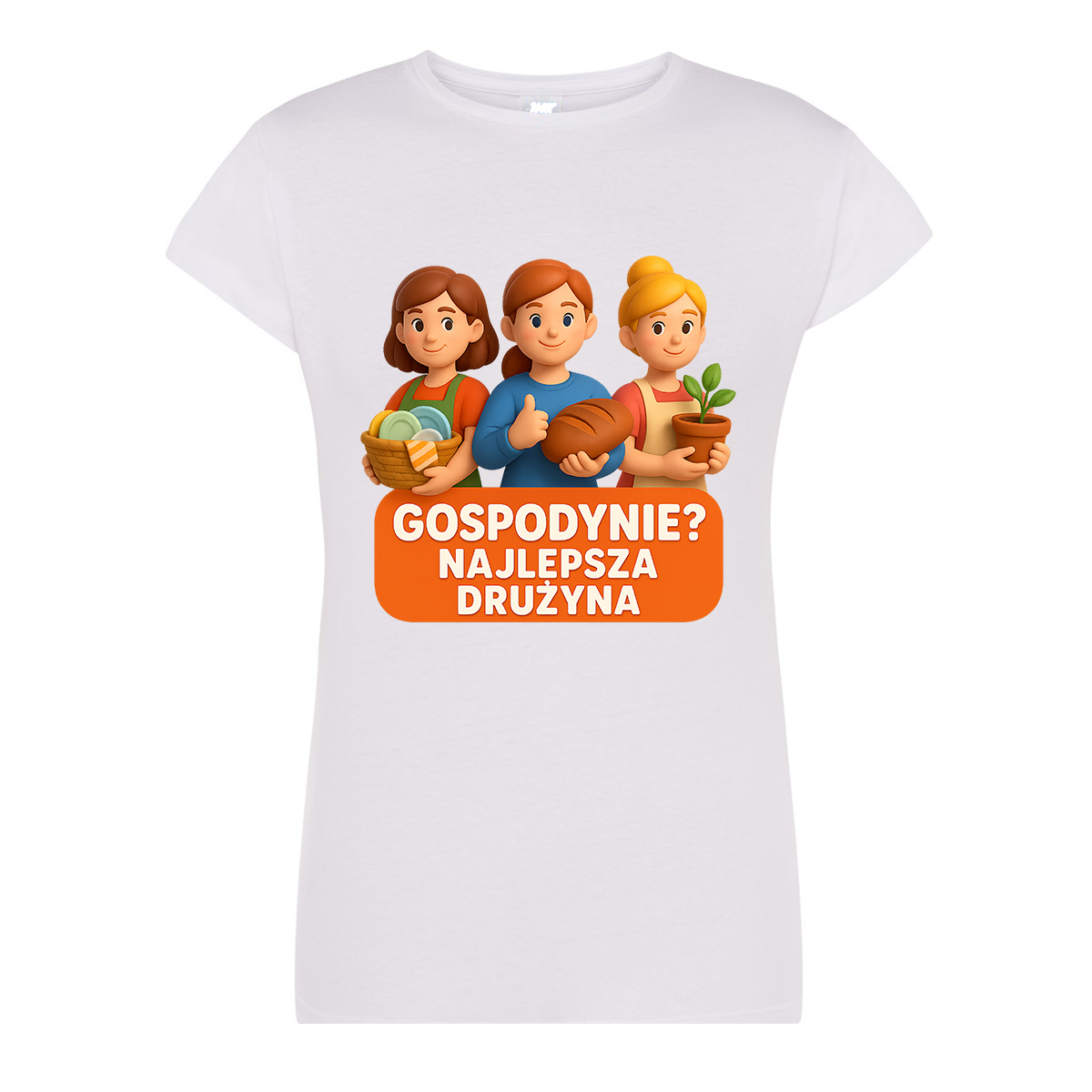 Na przodzie koszulki znajduje się wyjątkowy napis: „Gospodynie – najlepsza drużyna”, który symbolizuje siłę wspólnoty i dumę z tradycji.