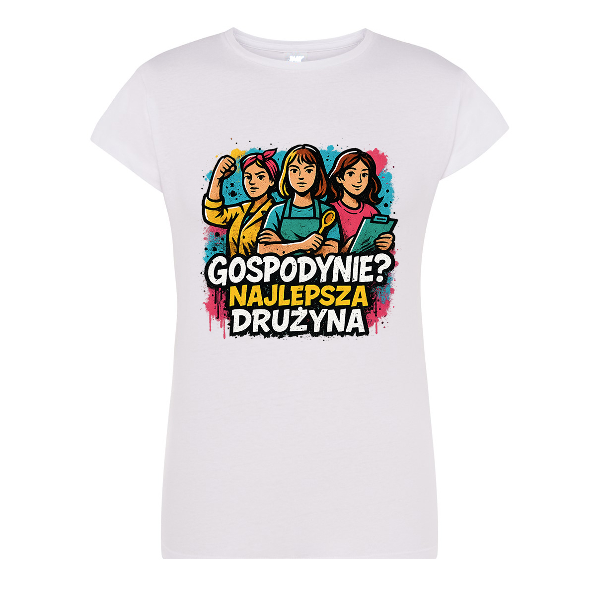 Na przodzie koszulki znajduje się wyjątkowy napis: „Gospodynie – najlepsza drużyna”, który symbolizuje siłę wspólnoty i dumę z tradycji.