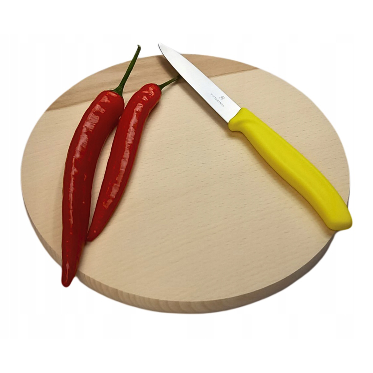 Uniwersalna, okrągła deska kuchenna o średnicy 22 cm to niezbędny element w każdej kuchni. Wykonana z litego drewna bukowego, jest trwała, funkcjonalna i estetyczna. Świetnie sprawdzi się zarówno do krojenia, jak i eleganckiego podawania przekąsek, serów czy wędlin.