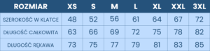 | Rozmiar | XS, S, M, L, XL, XXL, 3XL |