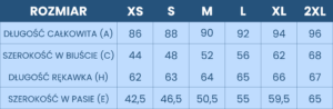 • Dolny ściągacz i mankiety rękawów z dzianiny ściągaczowej z dodatkiem elastanu – zapewniają elastyczność i komfort noszenia.