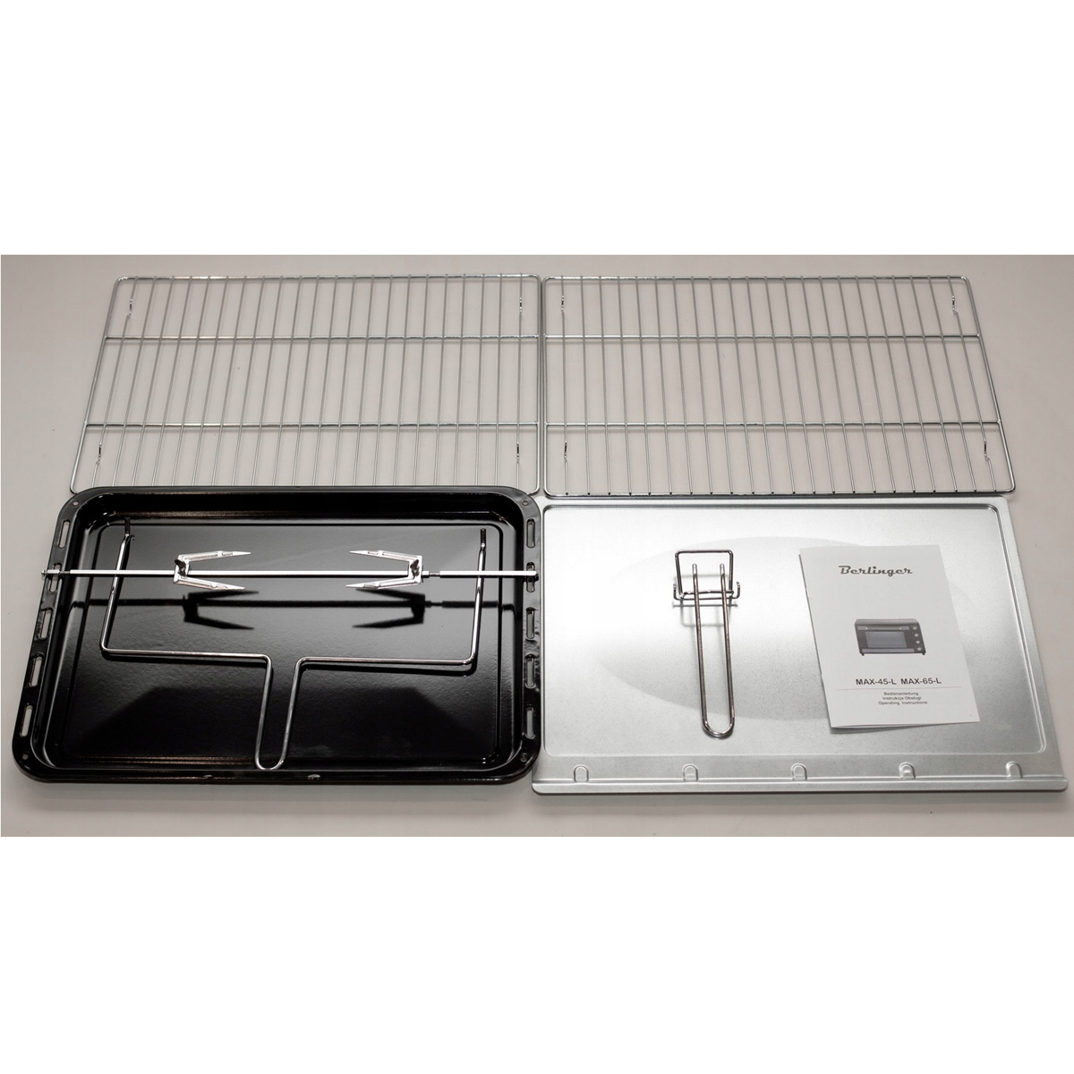 • Bogate wyposażenie – rożen, blachy i ruszty w zestawie, bez dodatkowych kosztów.