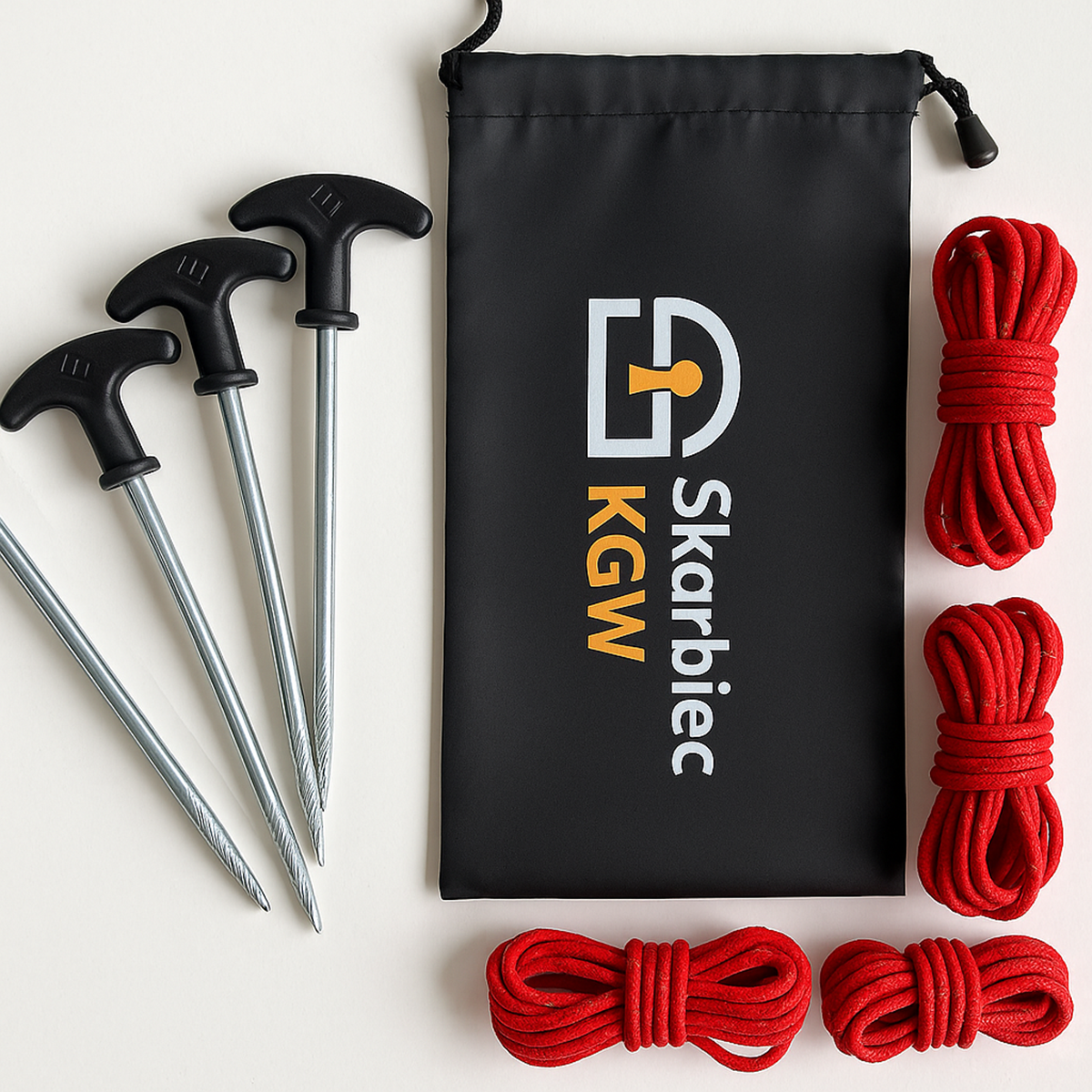 Kompletny zestaw akcesoriów niezbędnych do bezpiecznego rozstawienia namiotu w trudnych warunkach terenowych. Zawiera zarówno solidne szpilki stalowe, jak i trwałe naciągi z napinaczami, a wszystko to zamknięte w praktycznym pokrowcu.